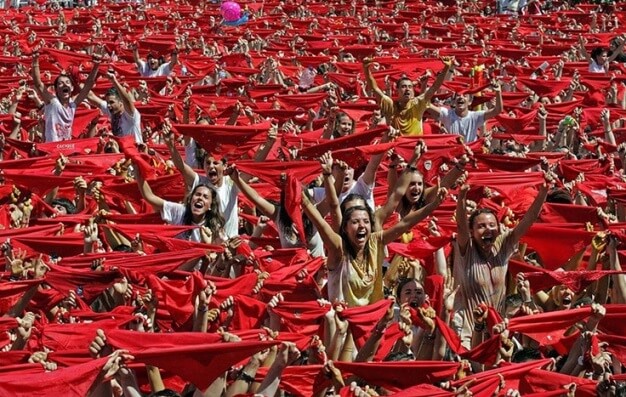 Todo empieza el miércoles 6 de julio a las 12 del mediodia con el Chupinazo en la Plaza del Ayuntamiento, donde los gritos de “¡Viva San Fermín! ¡Gora San Fermín!” sumados al estruendo del cohete, provocan un sinfín de emociones. A partir de ese momento, el rojo y el blanco, los colores por excelencia, inundarán las calles de Pamplona durante 8 días en los que los toros, la música, el alcohol y el baile rebosarán por todas las esquinas.