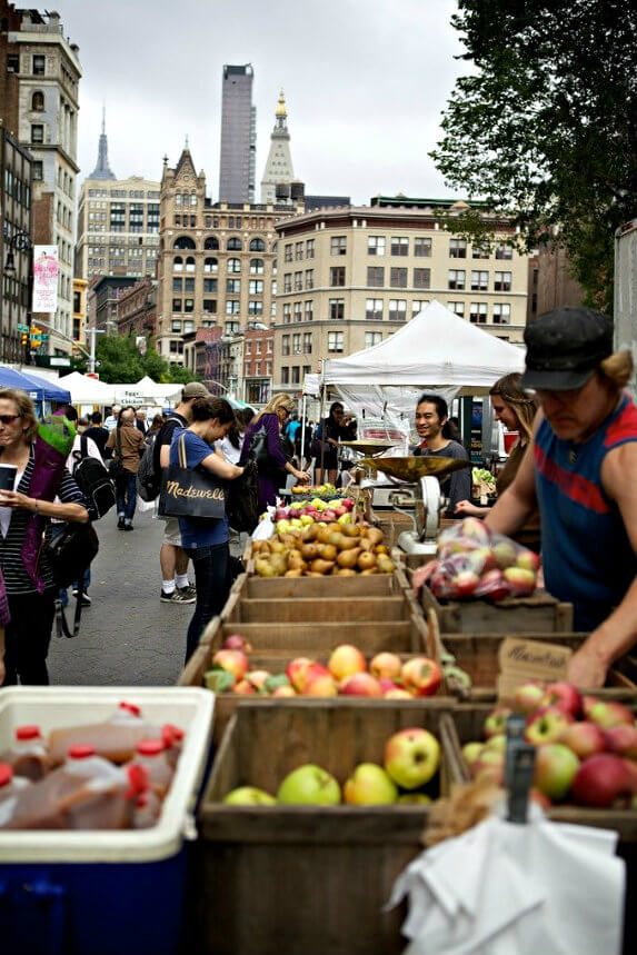 Market en Nueva York Si quieres llenarte el estómago sin necesidad de darte un gran festín en un restaurante, una de las cosas que puedes hacer es pasearte por el Union Square Greenmarket. En este mercado,  agricultores regionales, pescaderos, panaderos, y artesanos locales instalan sus puestos todos los lunes, miércoles, viernes y sábados.