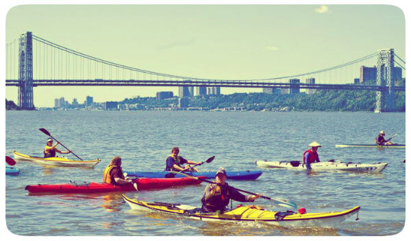 Paseo en kayak por el Río Hudson en Nueva York Si viajas a Nueva York durante los meses de verano, tendrás la oportunidad de vivir una experiencia diferente y obtener unas vistas del skyline únicas. ¿Cómo? Yendo en kayak por el río Hudson y el East River. Solo tienes que acercarte hasta el Pier 26 y 96(río Hudson), Brooklyn Bridge Park, en el Pier 2 (East River), Governors Island (East River), Louis Valentino Jr. Pier Park (East River).