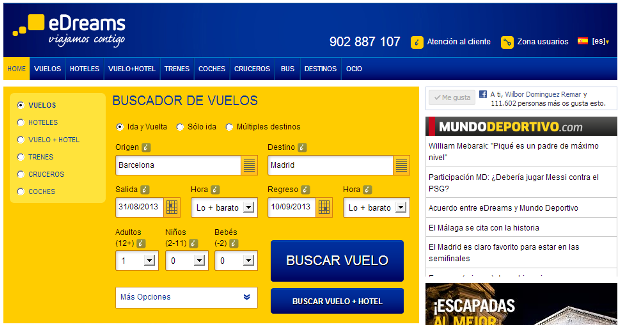 Y es que eDreams y Mundo Deportivo han llegado a un acuerdo para que los usuarios que contraten vuelos, viajes y hoteles a través de www.edreams.es puedan acceder a las principales noticias, reportajes, crónicas y toda la información más destacada del periódico deportivo.