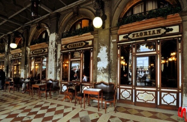 “Venezia Tironfante” fue el primer nombre del que se considera que es el café más antiguo de Europa. Fue fundado en 1720 por Floriano Francesconi. Está dividido en pequeñas habitaciones donde el mármol es el protagonista, Cada sala está cubierta con murales, cuadros y espejos largos. Las mesas, también de mármol y las sillas acolchadas se colocan en la entrada donde un cuarteto musical toca cada tarde. También este café fue un importante lugar de encuentro para intelectuales como Lord Byron, Charles Dickens o Marcel Proust.