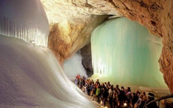 Fue descubierta en 1879. Tiene una longitud total de 42 km, lo que la convierte en la mayor cueva de hielo del mundo, motivo por el cual hoy en día es un destino muy popular para los turistas.