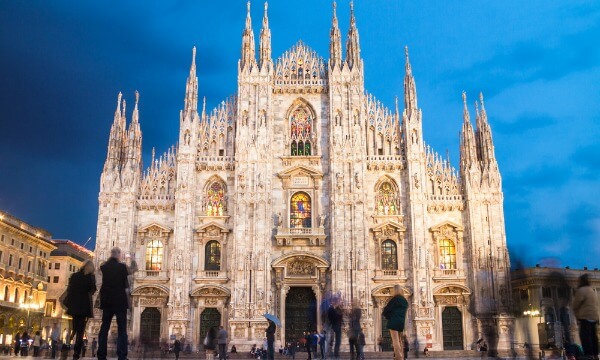 Curiosidades: Alberga una de las catedrales góticas más grandes del mundo con 108 m de altitud y espacio para más de 40.000 personas, pero siempre custodiado a ambos lados por la Galerie Vittorio Emanuele y  el Palazzo Reale
