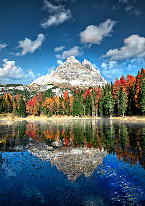 Aunque tocan otras regiones, estas montañas se extienden principalmente por las tierras de Belluno. Aquí muchos pueblos viven del turismo, principalmente de los esquiadores y escaladores que buscan altas montañas como la Marmolada (de 3.342 metros) para olvidarse de la ciudad y reconciliarse con la naturaleza. A pesar de que Las Dolomitas forman parte de los Alpes, sus paisajes poco tienen que ver: se caracterizan por los enormes valles cubiertos de bosque y salpicados de lagos y ríos como el Piave.