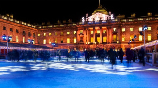 Somerset House Ice Rink es la pista de patinaje más antigua de Londres y también la pista preferida por la mayoría de londinenses. Ubicada en un palacio neoclásico a orillas del Támesis, es en su patio interior, el mismo que se usa para la London Fahsion Week, donde se instala la pista al aire libre. ¿Has patinado alguna vez en un palacio? ¡No te lo puedes perder! Además si vas de noche la iluminación es espectacular…