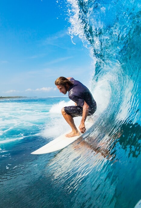 Surf: consiste en desplazarse sobre las olas sobre una tabla de madera.