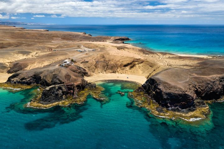 ¡Uno de los tesoros más populares de Lanzarote! Se trata de una pequeña bahía con aguas tranquilas donde puedes apreciar una gama de colores entre verdes y azules. Si visitas esta playa durante un día de cielo despejado, intenta visualizar en el horizonte el islote de Lobos o las dunas de Corralejo de Fuerteventura.