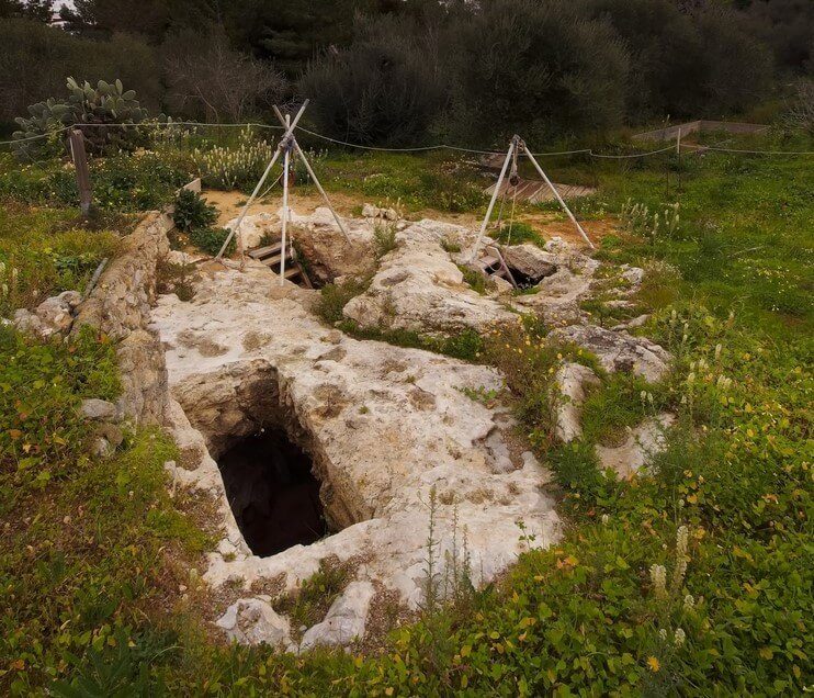 Hipogeo púnico excavado en el suelo de la necrópolis de Puig des Molins en Ibiza, Islas Baleares
