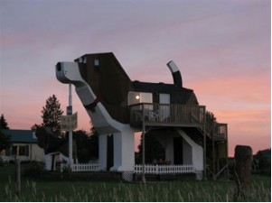 El origen de todo se remonta a los tiempos de Ulises y el Caballo de Troya. En este caso el caballo es un perro, probablemente un San Bernardo, en el que puedes dormir. Este hotel tan perruno se encuentra en Cottonwood, Idaho, al noroeste de EEUU.