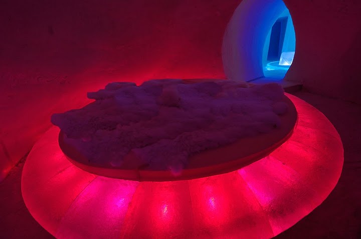 Este hotel es una verdadera escultura en el hielo. Se encuentra en el parque nacional del Geirangerfjord, entre los fiordos noruegos. Abre durante todo el invierno, desde diciembre hasta el derretimiento del hielo. Los juegos de las luces artificiales calientan el ambiente.