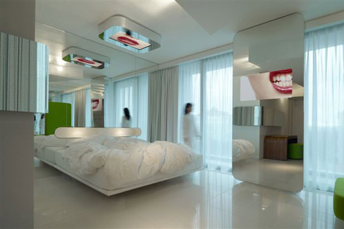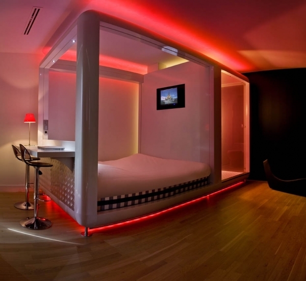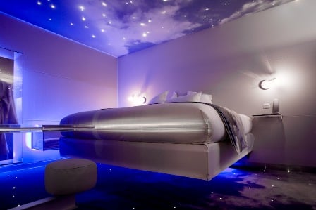 Diseño, luces, muebles… cada detalle de este hotel es único. La suite con la cama que parece flotar en el aire representa el sueño de muchos, pero sólo unos pocos pueden dormir ella, porque el precio por noche es muy alto: entre 700€ y 900€ para descansar en una suite de 45 m2.