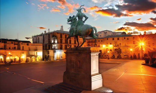 Trujillo, cuna de conquistadores, destaca por su impresionante Plaza Mayor, presidida por la estatua ecuestre de Francisco Pizarro. Sus palacios, castillo medieval y casas señoriales narran una historia de poder y esplendor. El trazado de sus calles empedradas invita a perderse y descubrir rincones llenos de encanto. Además, su ubicación estratégica y su ambiente tranquilo lo convierten en un lugar ideal para disfrutar de la historia, la cultura y la belleza rural de Extremadura.